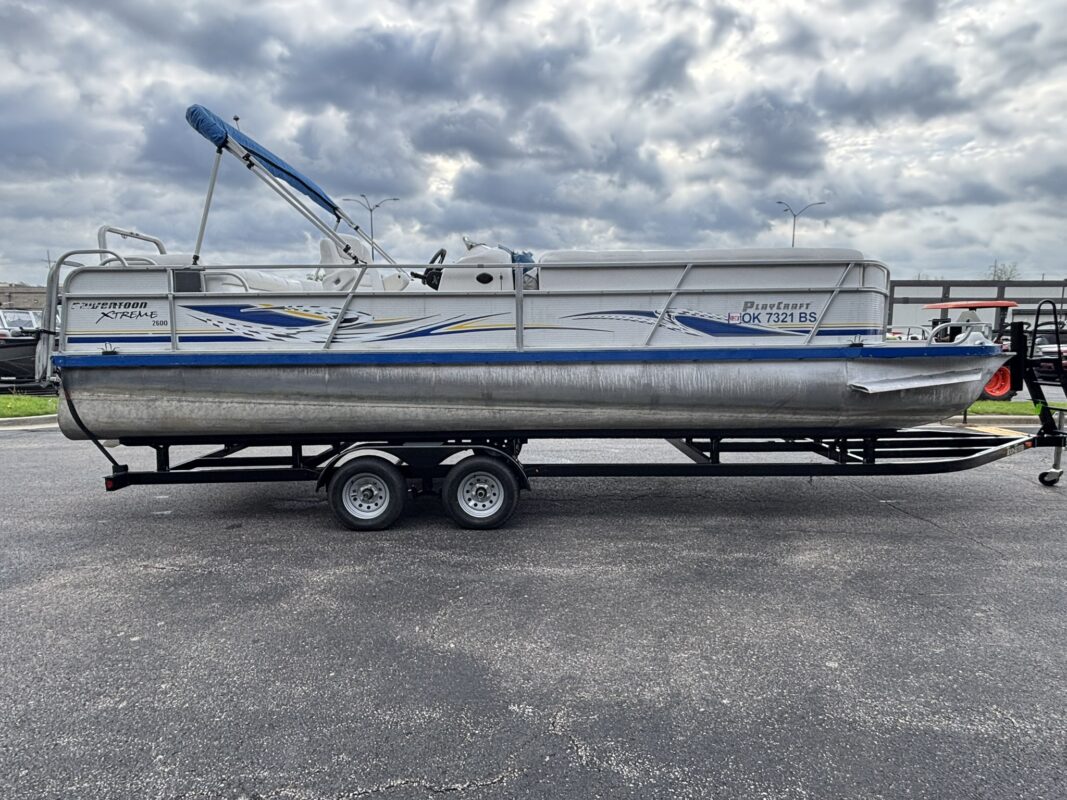 Enjoy the perfect blend of performance and comfort with this 2004 Playcraft 26 Powertoon. Powered by a strong Honda 250HP engine, this tritoon delivers impressive speed, smooth handling, and plenty of power for tubing, cruising, or a full day on the lake. The 26-foot layout offers generous seating and space for family and friends, while the triple-toon design provides added stability and a confident ride in all conditions. Whether you’re relaxing in a quiet cove or entertaining a full crew, this Playcraft is ready for it all. Clean, well-kept, and lake-ready, it’s a great opportunity to own a versatile performance pontoon at a great value.